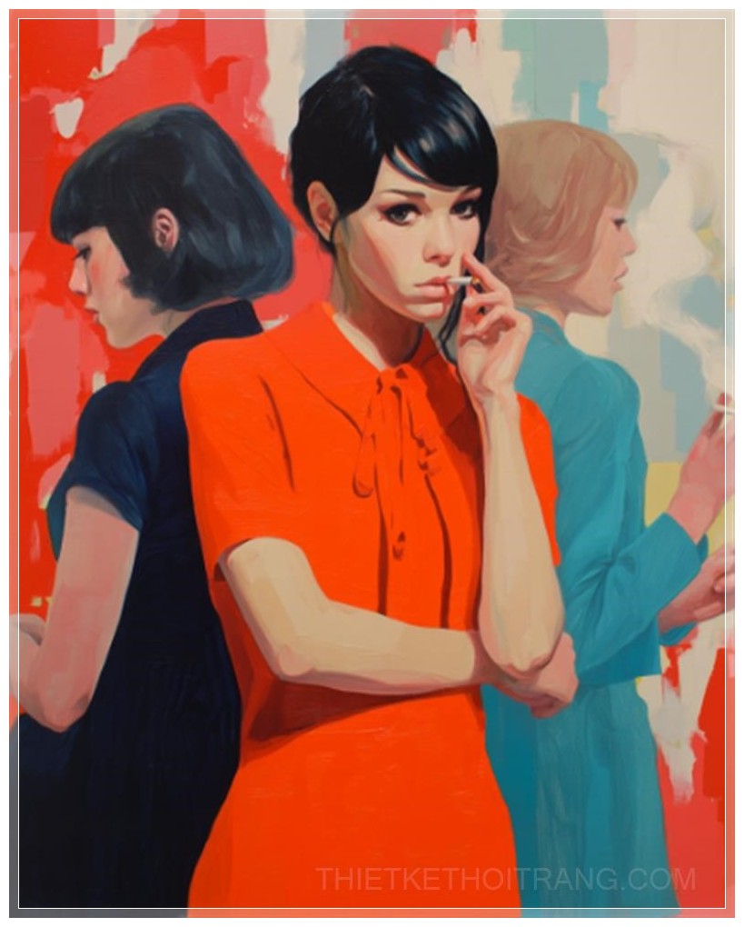 Tranh hiện đại của người Hispanic do James Jean vẽ, chủ đề lấy cảm hứng từ Miles Aldridge và Jimmy Marble, phong cách tối giản, mang vẻ ngoài lôi cuốn, tội lỗi.