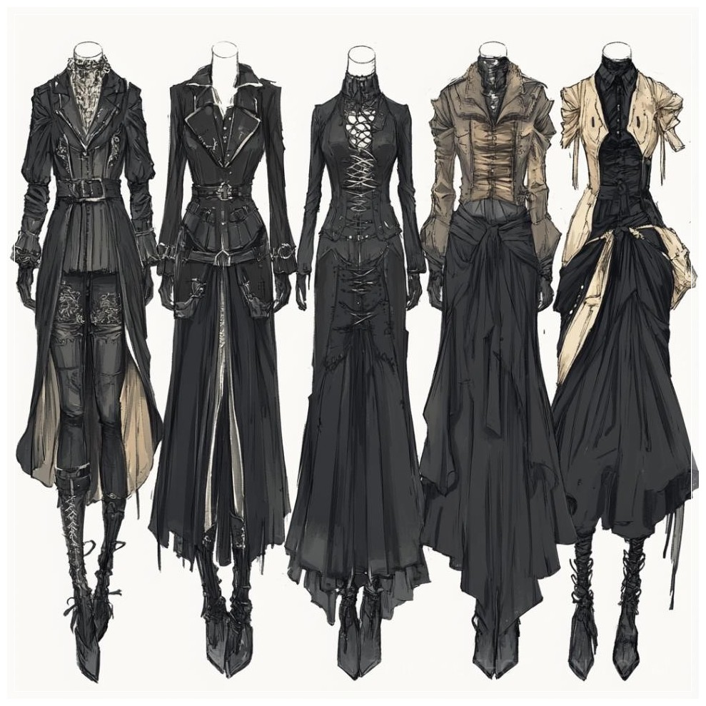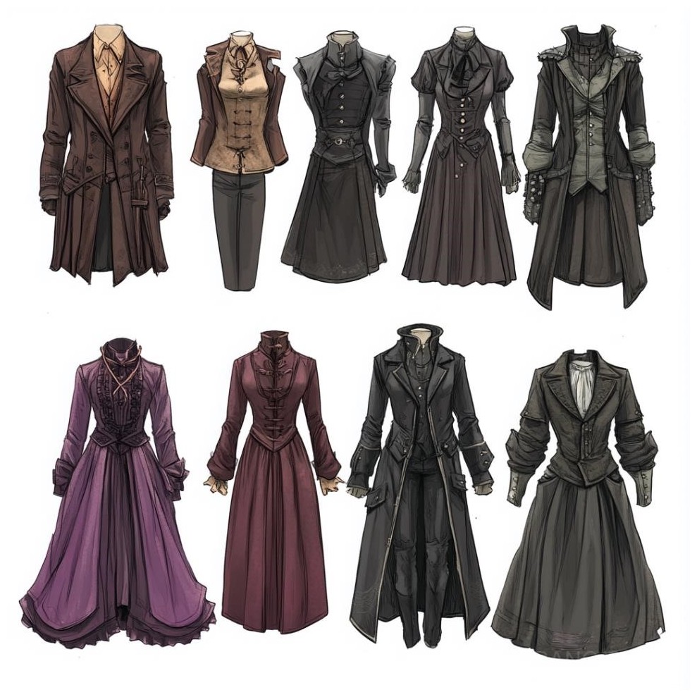 Trang phục phong cách dark academia với những bộ đồ màu sắc, kết hợp giữa sự trang trọng và cổ điển. Các chi tiết như áo khoác dài, quần tây, và áo sơ mi cổ cao tạo nên một phong cách học thuật đầy lịch sự. Màu sắc chủ đạo là nâu, xám, đen và rượu vang, mang lại cảm giác sang trọng nhưng cũng đầy nét bí ẩn. Phụ kiện như kính cận và thắt lưng da thêm phần nổi bật cho vẻ ngoài thanh lịch và trí thức.