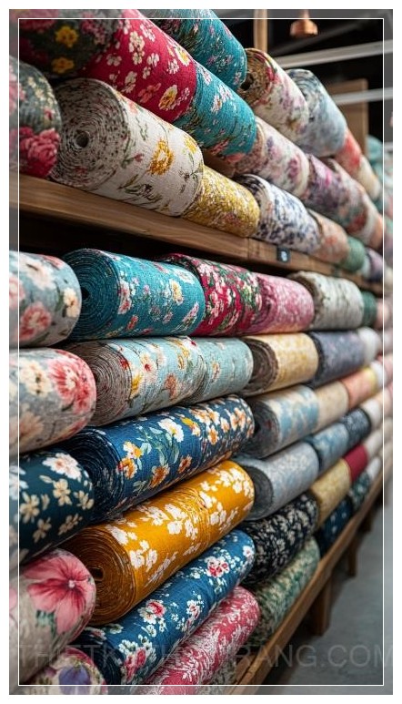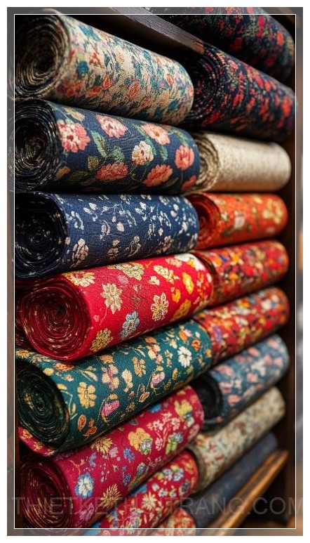 Các kệ vải cao ngất xếp gọn gàng, từ những cuộn vải lớn cho đến những mẫu vải nhỏ hơn được phân loại rõ ràng, giúp khách hàng dễ dàng lựa chọn. Vải in họa tiết tinh tế hay các mẫu vải đơn sắc trang nhã đều có mặt tại đây, với sự pha trộn hoàn hảo giữa chất liệu truyền thống và hiện đại. Cảm giác khi chạm vào vải, từ sự mềm mại của lụa cho đến độ bền bỉ của vải denim, tất cả đều khiến bạn không thể rời mắt.