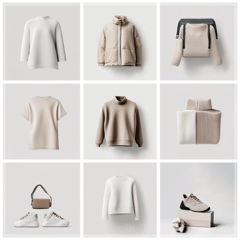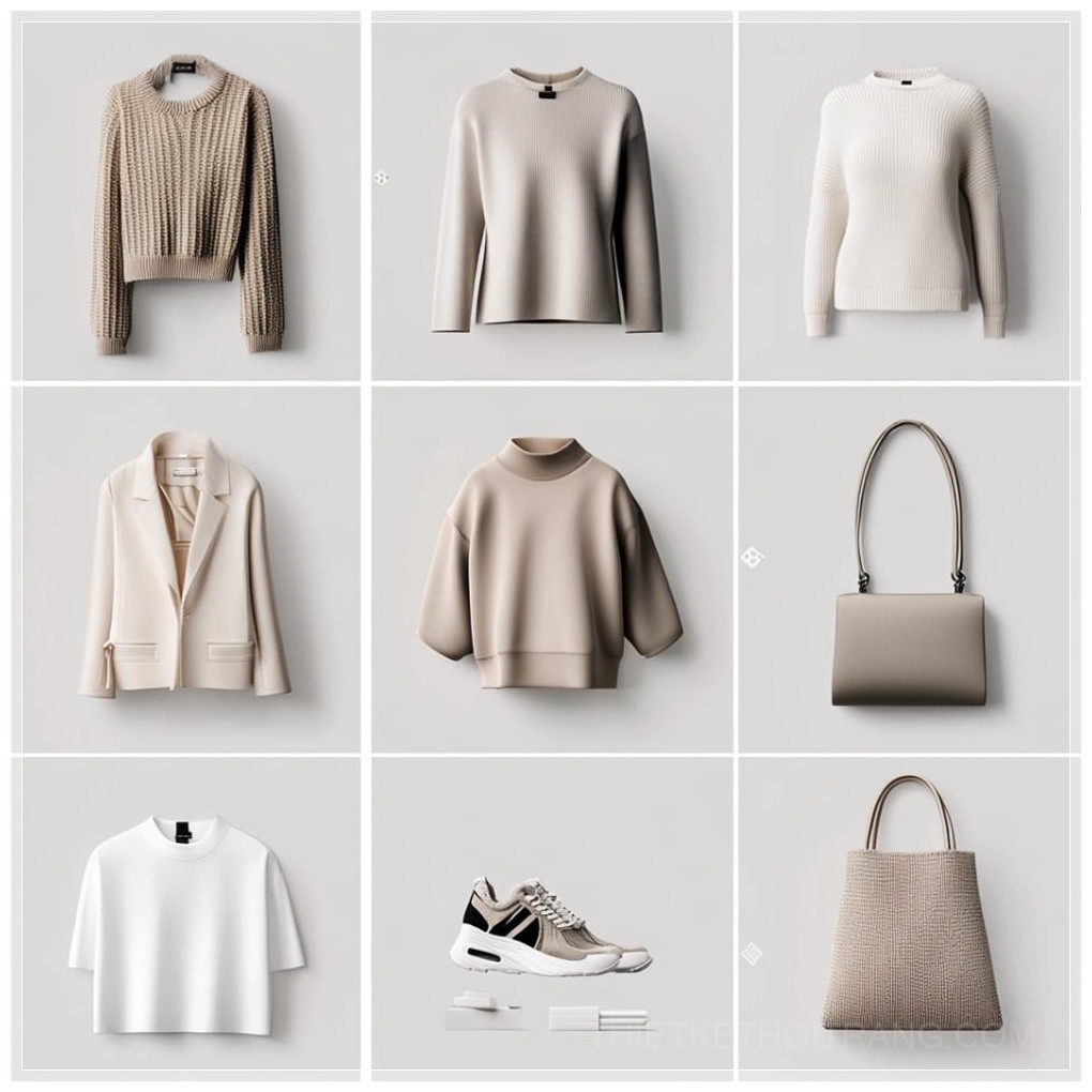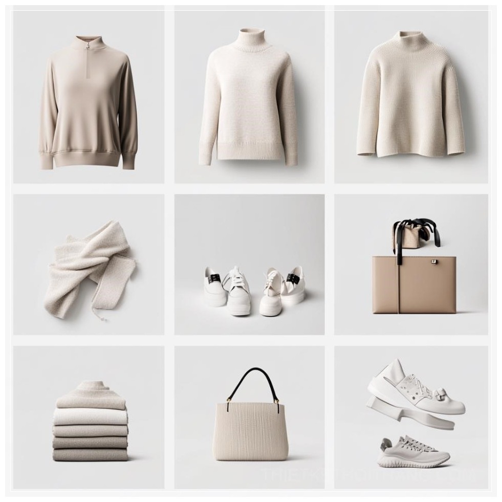 Với ánh sáng mềm mại và nền trắng hoặc xám nhạt, bộ sưu tập này tôn vinh sự đơn giản và thanh lịch trong từng chi tiết. Mỗi sản phẩm được sắp xếp cân đối trong một không gian tinh tế, tạo ra một tổng thể hài hòa và đầy tính thẩm mỹ.