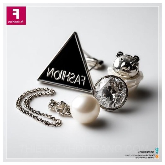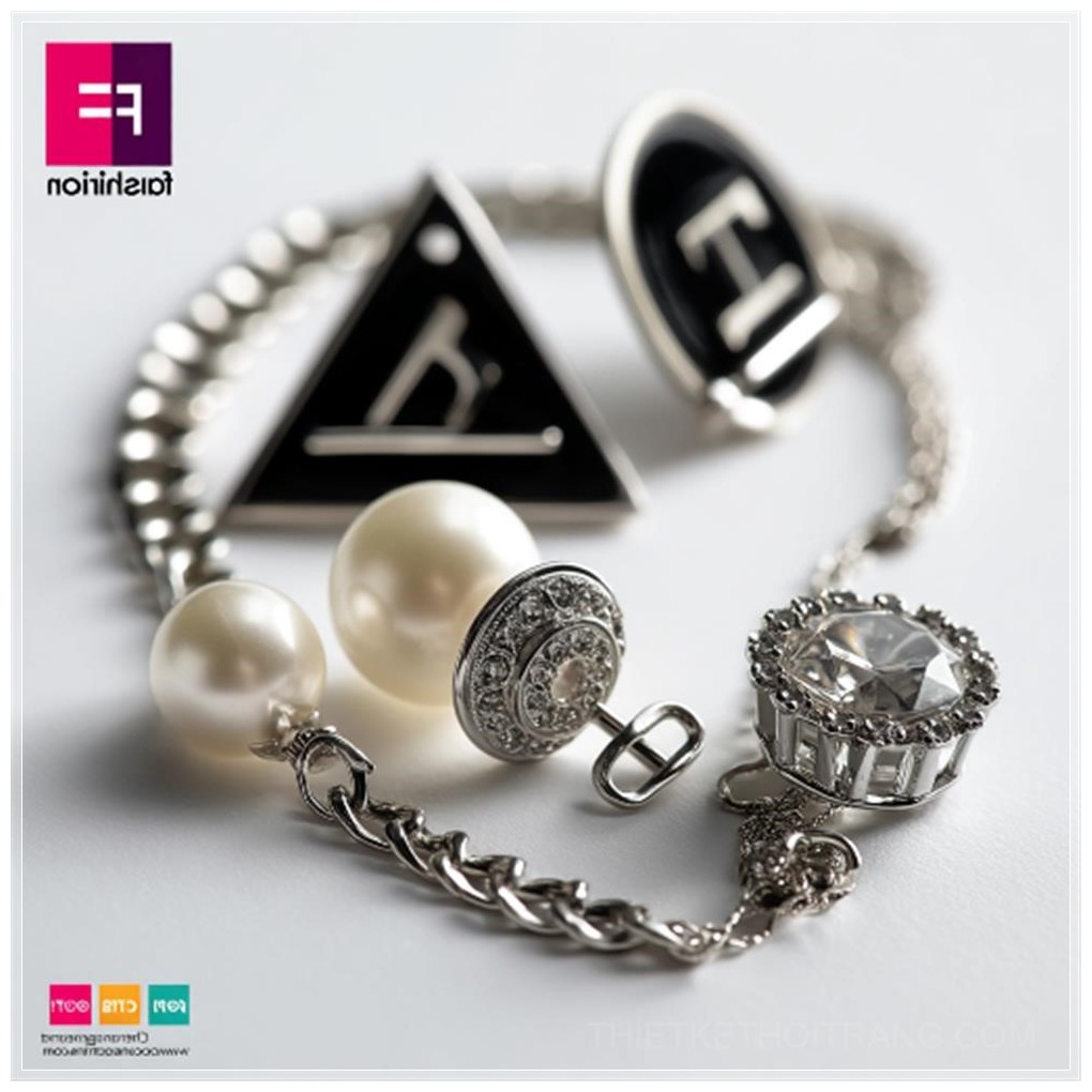 Bên cạnh đó, chiếc nút ngọc trai hình gấu nhỏ nhẹ nhàng nhưng không kém phần đáng yêu, tạo điểm nhấn mềm mại và tinh tế trong thiết kế. Dây chuyền bạc với hình dáng tam giác mang lại cảm giác vững chắc, kết hợp hoàn hảo với các yếu tố nhẹ nhàng khác của bộ sưu tập này. Đặc biệt, logo F ở góc trên bên phải của bức ảnh như một dấu hiệu khẳng định sự chuyên nghiệp và đẳng cấp trong từng sản phẩm.