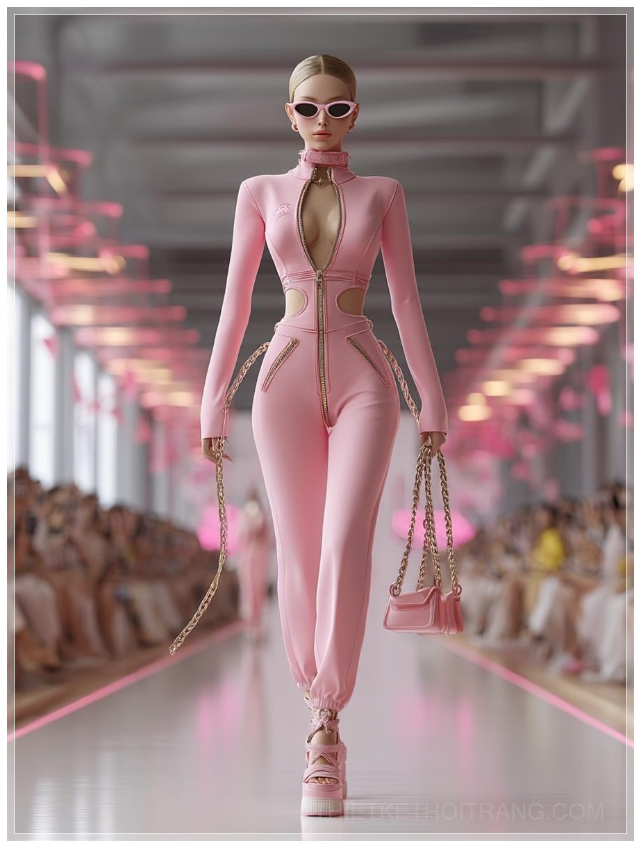 Với gam màu hồng ngọt ngào đặc trưng của Barbie, mỗi bộ trang phục trong bộ sưu tập đều được thiết kế tỉ mỉ đến từng chi tiết. Từ những chiếc áo khoác phủ lông đến váy ngắn với lớp vải bóng bẩy, mọi yếu tố đều mang đến một cảm giác hiện đại nhưng đầy hoài niệm. Những đường cắt tinh tế, những chi tiết kim loại và phụ kiện thời thượng tạo nên một bức tranh sống động của thời trang Y2K.