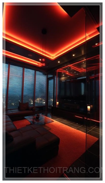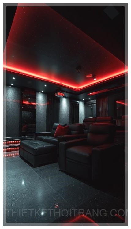 Chào đón bạn vào không gian kỳ diệu của một rạp chiếu phim trong căn penthouse sang trọng, nơi màu đen huyền bí của từng chi tiết nội thất làm nổi bật sự đẳng cấp và hiện đại. Căn phòng này không chỉ đơn giản là nơi xem phim mà là một không gian nghệ thuật đích thực, với ánh sáng đỏ LED mờ ảo, tạo nên bầu không khí tối giản nhưng đầy lôi cuốn.