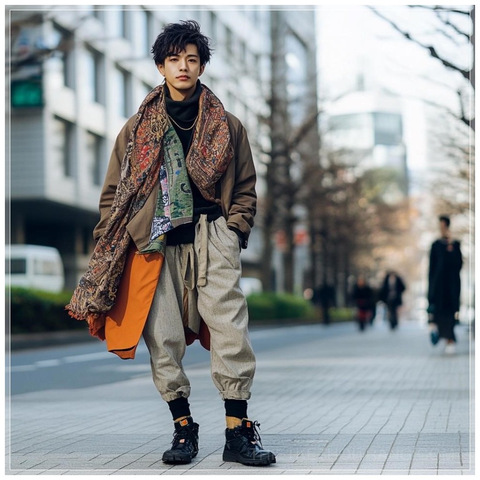 Với sự lựa chọn thông minh từ quần áo đến phụ kiện, anh ta không chỉ mang đến một phong cách thời trang đầy ấn tượng, mà còn thể hiện được nét văn hóa đặc trưng của Nhật Bản, nơi mà mỗi bộ trang phục không chỉ đơn giản là quần áo, mà là một câu chuyện kể về cá tính và phong cách sống.