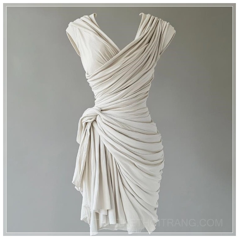 Váy trắng drapered như một lời tuyên ngôn của sự thanh lịch và thanh thoát, là lựa chọn lý tưởng cho những buổi tiệc tối sang trọng hay những dịp đặc biệt. Mỗi nếp vải, mỗi chi tiết trên chiếc váy này đều mang trong mình một câu chuyện về phong cách sống đầy vẻ đẹp và sự duyên dáng, là sự hòa quyện giữa sự hiện đại và sự tinh tế của thời trang cao cấp.