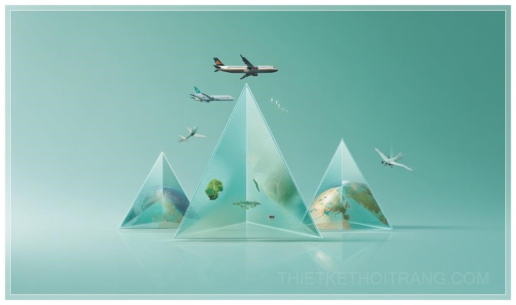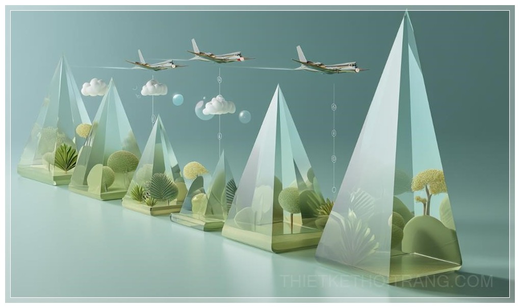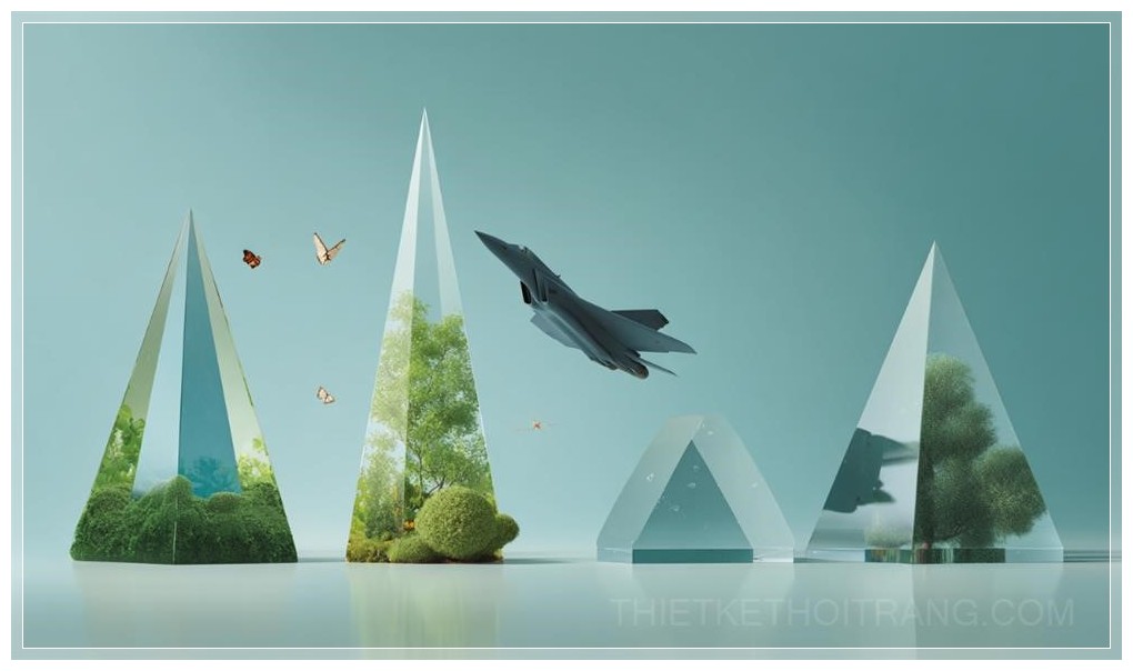 Với các gam màu chủ đạo là xanh dương nhẹ nhàng kết hợp với xanh lá, nền của infographic mang đến cảm giác thư giãn và tươi mới, như thể máy bay này không chỉ là biểu tượng của sức mạnh mà còn của sự bảo vệ cho môi trường xung quanh. Hình ảnh này được ghi lại bằng Sony Alpha A7 III với khẩu độ f/20, cho phép tái hiện chi tiết và sắc nét mọi góc cạnh của những chiếc chóp thủy tinh.