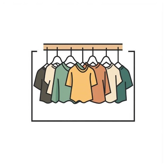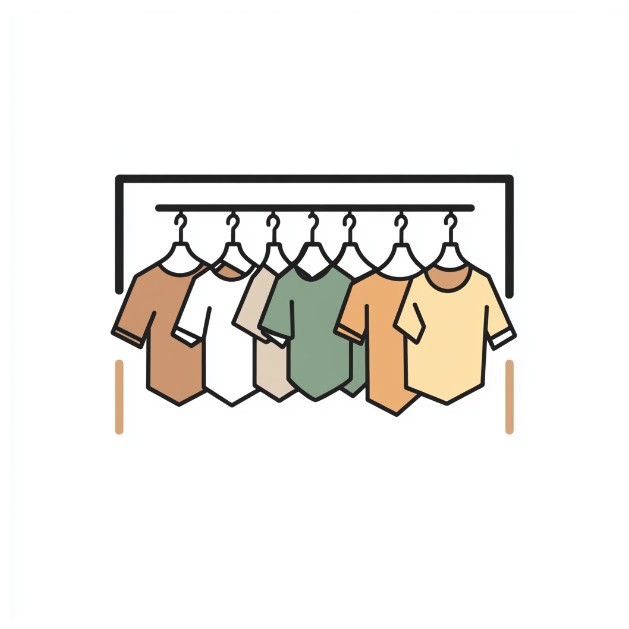 Logo của một cửa hàng quần áo có thể là yếu tố quyết định trong việc tạo nên ấn tượng đầu tiên cho khách hàng. Một thiết kế logo đơn giản nhưng lại cực kỳ nổi bật chính là sự kết hợp hoàn hảo giữa sự tối giản và tính thẩm mỹ cao. Hãy tưởng tượng một chiếc logo được đặt trong một hình chữ nhật gọn gàng, bên trong là hình ảnh của 7 chiếc áo phông treo thẳng hàng, mỗi chiếc áo mang một sắc màu tự nhiên nhẹ nhàng.