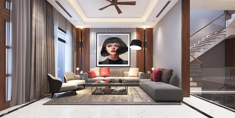 Thiết kế nội thất phòng khách phong cách đương đại đẹp cho biệt thự, nhà phố